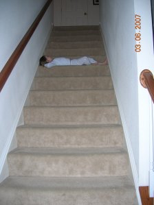 03.07.07 by michellereitemeyer What I Just Found… …on my way upstairs. That’s Jenny. Out cold. Because the stairs are so much more comfortable than the bed… Share this: Click to share on X (Opens in new window) X Click to share on Facebook (Opens in new window) Facebook Like Loading... Related