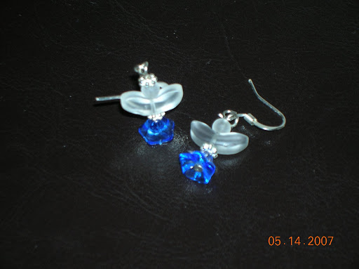 Katie had a present for me, too. Dangly angel earrings she had made herself at a friend’s house under the tutelage of the friend’s older sister. In blue – my favorite color. Aren’t they lovely?