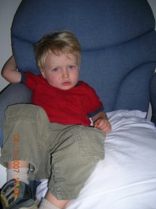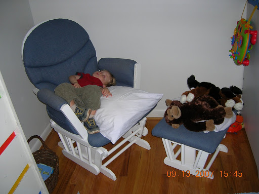 4. He had been sleeping for about an hour and a half when I went in. As soon as I opened the door, the din from downstairs rose to a crescendo, and that was really what woke him up. That and the flash.