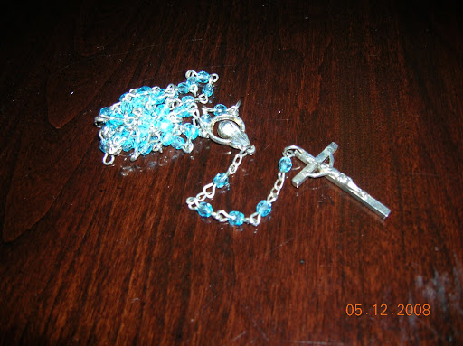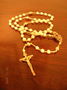 Surely none of my offspring would be so foolish as to bury me with my wedding or engagement rings. I hope that someone else can wear them and have even a fraction of the joy my marriage has given me. Just bury me in my newly repaired pearl necklace (thank you Pearl Girl) and holding this rosary. I sure hope I have people praying the rosary for me.