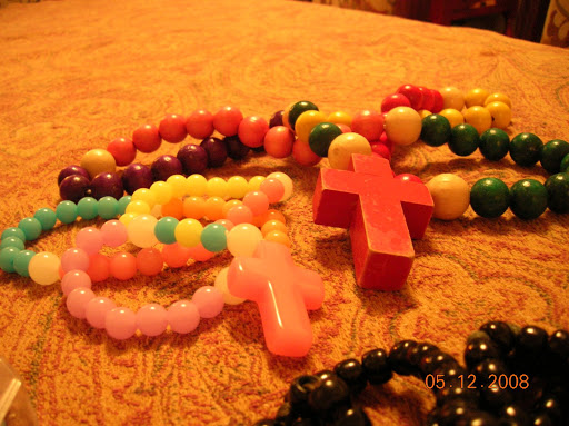 4. Okay- does anyone have more rosaries than you? If someone does, I would like them to comment here because that it pretty amazing. I am always drawn to glass rosaries, but what tugs at my heartstrings are little kids with wooden rosaries trying to figure out what to do with all the beads. I LOVE A CHILD WITH ROSARIES.Nice post idea.(But if we were talking statues…my grandmother, I think, had more of those than any human who didn’t live in a church.)