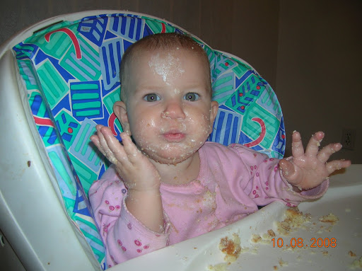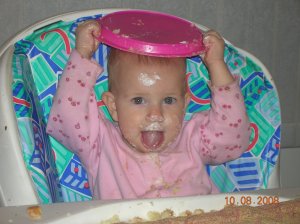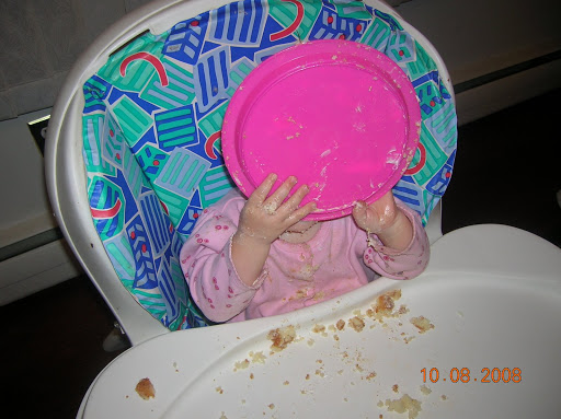Tell her, “Nice try, but we can still see that you’re bald under all that cake and pretty, pink plate!”>>Also, tell her that it has NOT been one, whole year since she was born (even though her mom had to post pictures with datestamps to try and prove it to herself). I don’t even know why she thinks that crazy thing.
