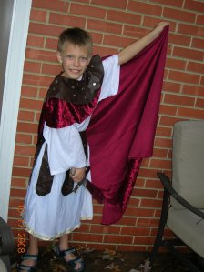6. I have a dragon costume that is the perfect size for Mary. One of the kids was St. George for our parish’s Christmas pagent, “The Saints visit the Christ Child” and Timmy was the dragon. Our TORCH group’s All Saints party is Nov 1, so far we have some Franciscian (I made it for St. Maximilian Kolbe), a blessed Kateri Tekakwitha, and a St. Elizabeth of Hungary. I have no idea what to do with the little boys as the only costumes I already have are Tigger and ballerinas.