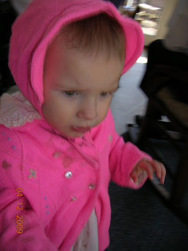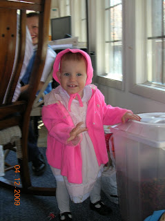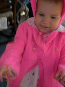 I was trying to get a picture of her wearing this jacket. I may have worn it when I was little. I know my younger sisters wore it.