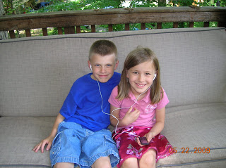 Sharing the iPod. We have a docking station, but it’s not out on the deck. And this leaves one ear free to listen to the birds.