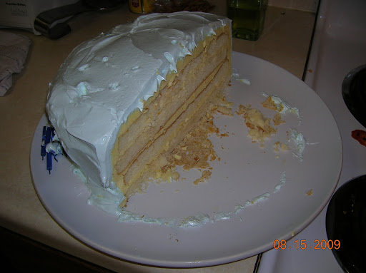 The biggest change I need to make is in the butter cream frosting. I made the entire recipe which is designed to fill a wedding cake three times the size. I really like butter cream frosting, but it is one of those things where more is not better. The filling was way too thick and made the cake too too buttery. It was like eating a stick of butter with a little cake on the side.