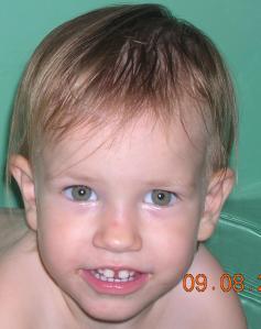 I had to get a shot of Mary before those last two top teeth come in. She has a cute gap up there, but her canines have erupted. The gap will be closing soon. Her eyes are looking pretty green here.