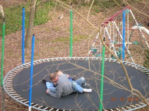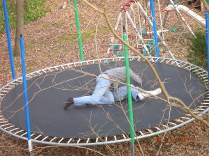 It’s hard work taking down a trampoline. It’s best to pace yourself and take a break every now and then.