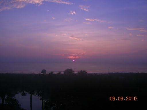 | Sunrise. Yes, we did this every day. Bill took the pic as I was running on the beach at the time. |