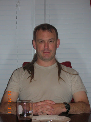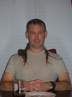 Here’s my middle aged hippie/rocker husband with a mullet/ponytail.
