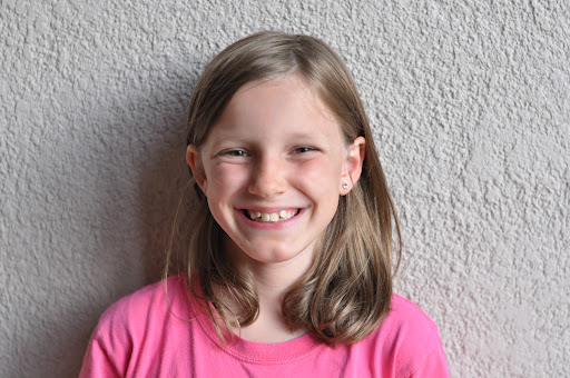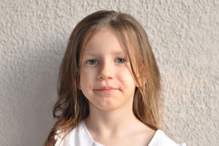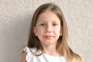 5 minutes later – dry hair and an unexplainable cut on her lip.  Lovely.