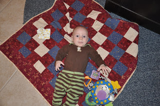It won’t be long before he’s mobile, and then the adventure really starts. Last night, I had just put some dishes from the oven on the bar-height counter in the kitchen from whence I planned to serve dinner buffet-style. Not realizing what I had done, Fritz sat at the bar, while holding George, and quicker than anything, the child had reached out and grabbed the dish, getting 2nd degree burns on 4 fingers of his right hand. {sigh} It was a bad-mommy moment, but just a warning that we’re going to have to be on top of things with this one.