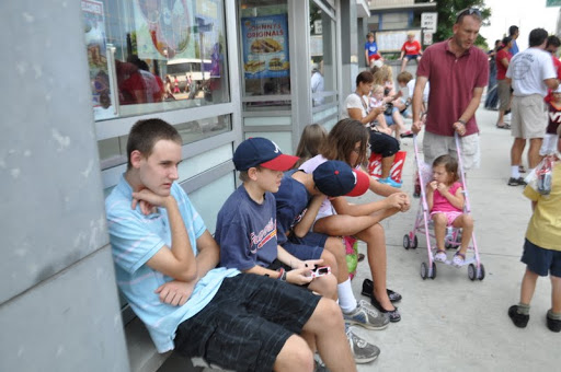 After Coke we headed to Johnny Rockets for lunch. We passed the 500 people standing in line for the Aquarium, high-fived ourselves for not being in with that crowd, and waited only about 15 minutes for a table (2 tables, actually) for our group of 11.