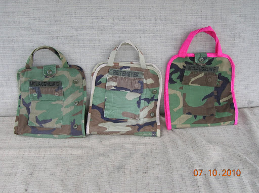 Then I found this backpack pattern online. For free. All it cost me was time. Well, not exactly true. I had to buy super-stiff interfacing and batting. But I bought no fabric or thread for this project, and I had a coupon for the other supplies. Sewing did take up the better part of the weekend, but I love the results. It was my first real quilting project. And it uses a recycled uniform.